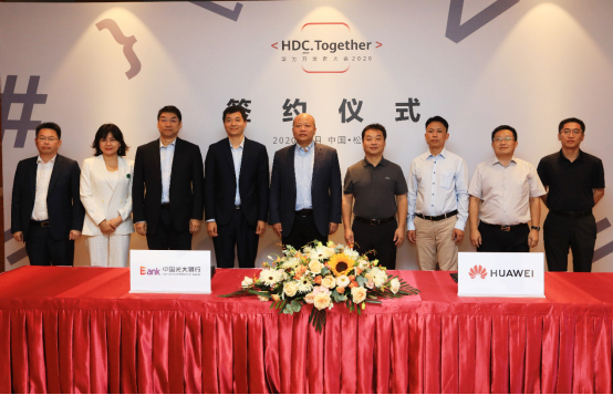 9月12日,光大银行与华为软件技术有限公司在东莞“华为开发者大会2020(Together)”上签署合作备忘录。根据协议,双方将在光大银行金融科技领域和华为服务号开展全面合作。光大银行副行长杨兵兵与华为消费者业务云服务总裁张平安出席该签约仪式。