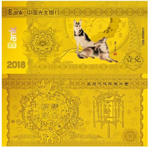 11月16日, 2018年中国光大银行戊戌狗年定制版生肖金《福旺双全》正式在光大银行“购精彩”系列电商平台及全国网点全面上线销售。