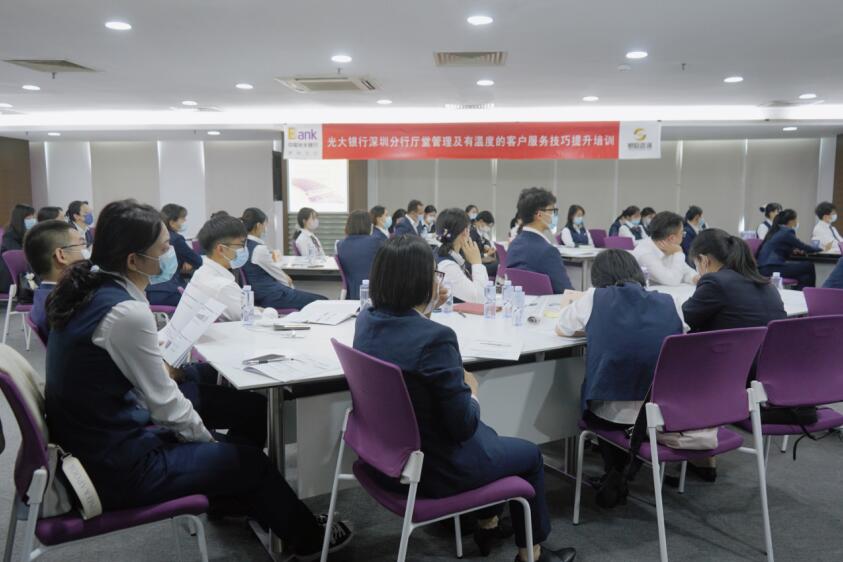为落实新形势下的服务工作要求,推进更优客户体验的服务规范,履行社会责任,树立光大品牌。11月12日,光大银行深圳分行举办了“厅堂管理及有温度的客户服务技巧提升”第三期专题培训。深圳分行总监、阳光服务(消费者权益保护)办公室负责人以及各支行大堂经理、大堂助理共50余人参加了培训。