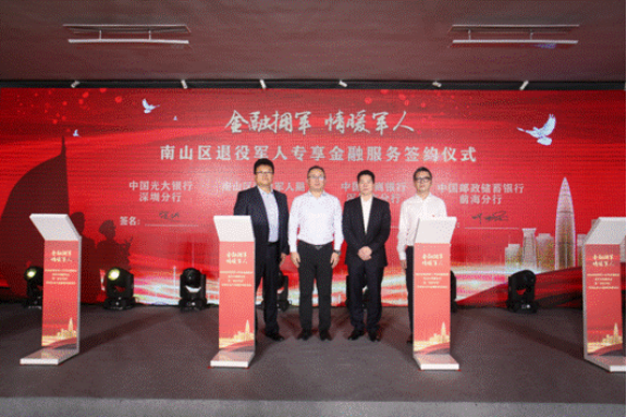 11月17日,光大银行深圳分行与深圳市南山区退役军人事务局成功签署专享金融服务协议,共同探索为更多有需要帮助的退役军人提供多元、综合的金融服务。