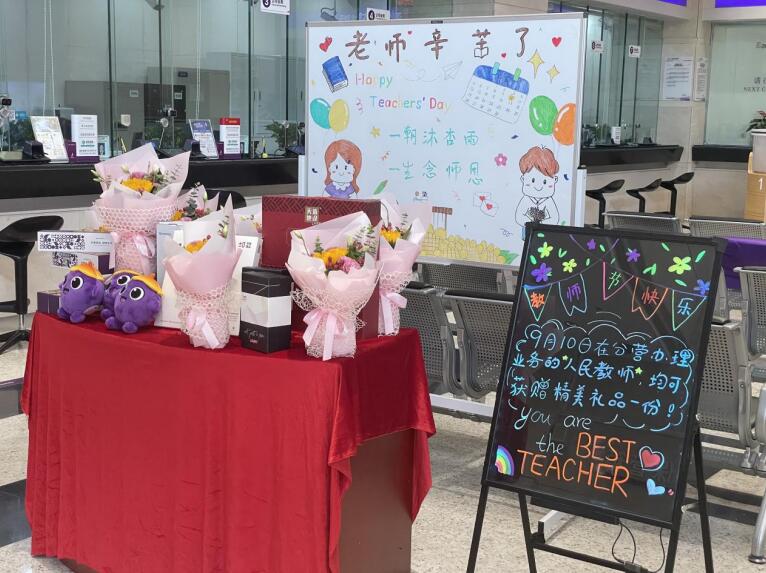 金秋九月,秋高气爽,为迎接第37个教师节,深圳分行开展“感恩教师节”系列活动,部分网点通过教师节专属活动,为广大教师客户送上了节日的鲜花。9月10日,在深圳分行营业部办理业务的人民教师均可获赠精美礼品一份。