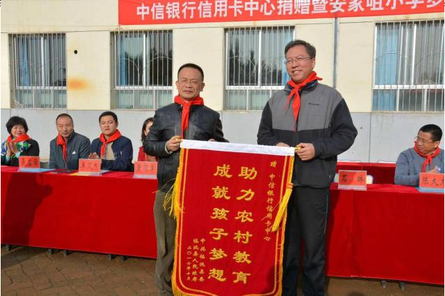 中信银行信用卡中心捐赠暨安家咀小学梦想中心揭牌仪式在甘肃省临洮县安家咀小学举行。