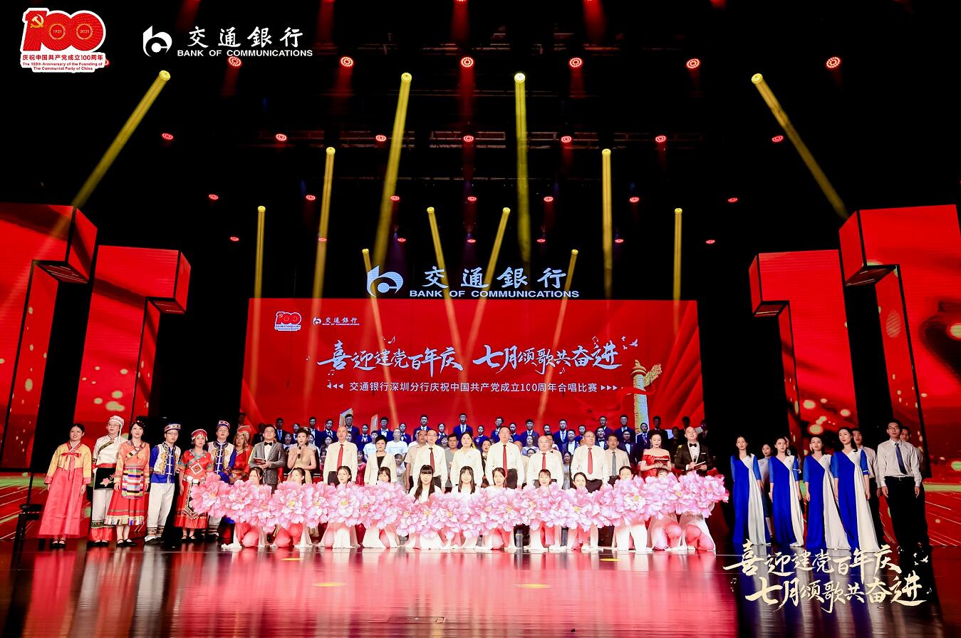7月25日,交通银行深圳分行在深圳大剧院隆重举办庆祝中国共产党成立100周年合唱比赛,深圳交行干部员工代表及家属代表约1200人现场参加活动,近3万人线上观演。
