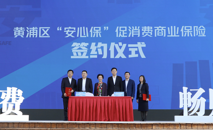 4月29日,在上海市商务委员会、黄浦区人民政府、上海市商业联合会共同主办的“安心消费畅购无忧”主题活动启动仪式上,中国太保与上海市黄浦区人民政府在“中华第一街”南京路步行街联合签署发布了黄浦区“安心保”促消费商业保险,为黄浦区七个重点商圈及消费者提供消费安全保障,助力全区抗击疫情、提振消费信心。