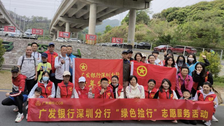 近日,广发银行深圳分行团委联合分行工会户外兴趣小组在马峦山郊野公园开展“绿色捡行”志愿活动,共40余名党团员、青年志愿者参与此次活动。