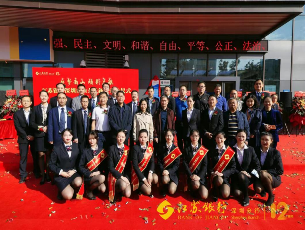 11月25日,江苏银行深圳南山支行举办新装开业仪式,南山区领导、各界企业嘉宾出席。江苏银行深圳分行行领导与南山支行负责人共同为支行揭牌,伴随红绸掀起,宣告该行经过重新升级,正式揭牌开业,揭开了江苏银行深圳南山支行“逐梦南山,焕新启航”的新篇章。