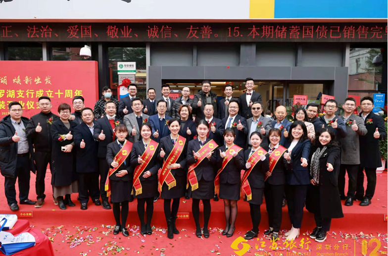 12月28日,江苏银行深圳罗湖支行罗湖支行成立10周年暨新装开业仪式圆满举行,罗湖区领导、各界企业嘉宾出席开业仪式,江苏银行深圳分行行领导与罗湖支行负责人共同为该行揭牌。