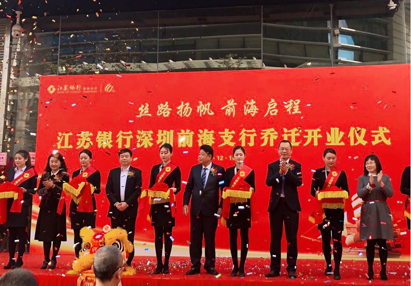 12月10日,江苏银行深圳前海支行乔迁开业,前海管理局、江苏省驻深办相关领导及支行重要嘉宾出席开业仪式。