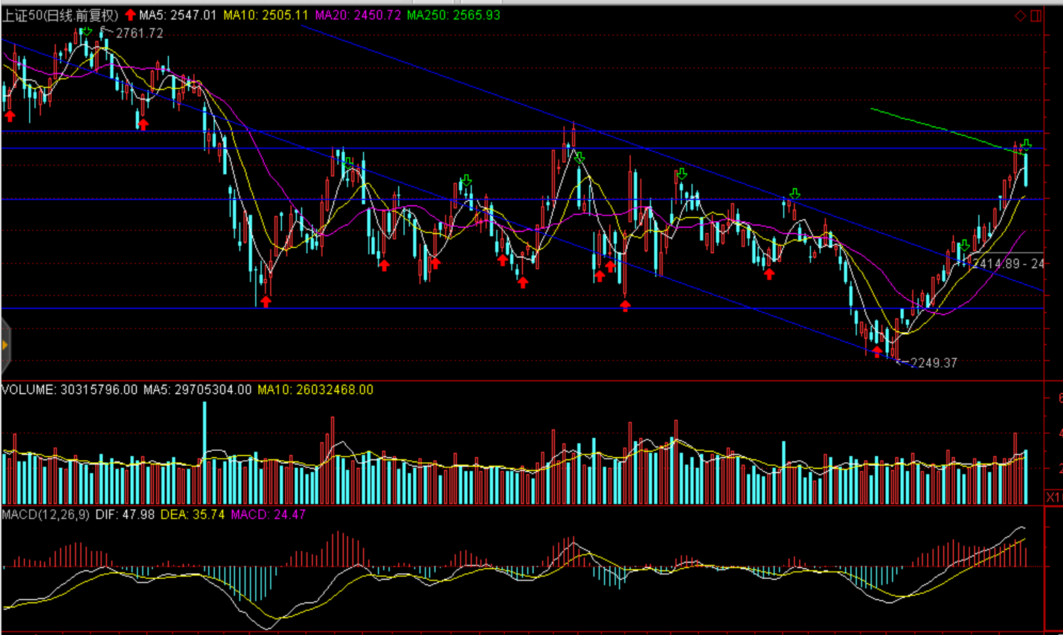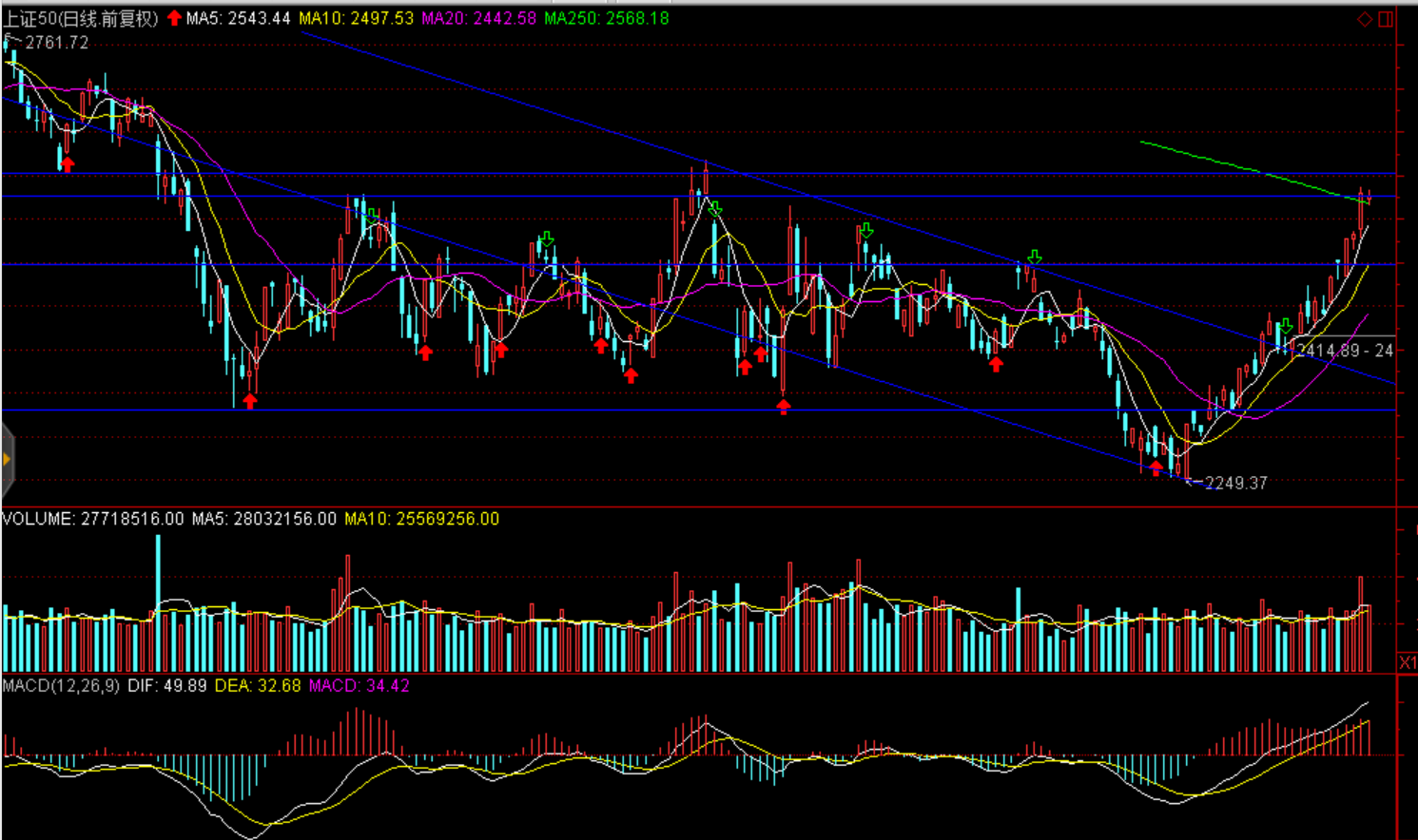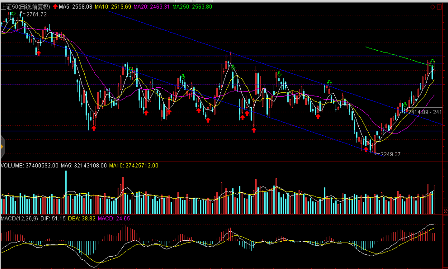 周一两市全线逼空,三大股指再创新高,均以大阳报收。两市放量成交5477亿元,环比增加1293亿元。