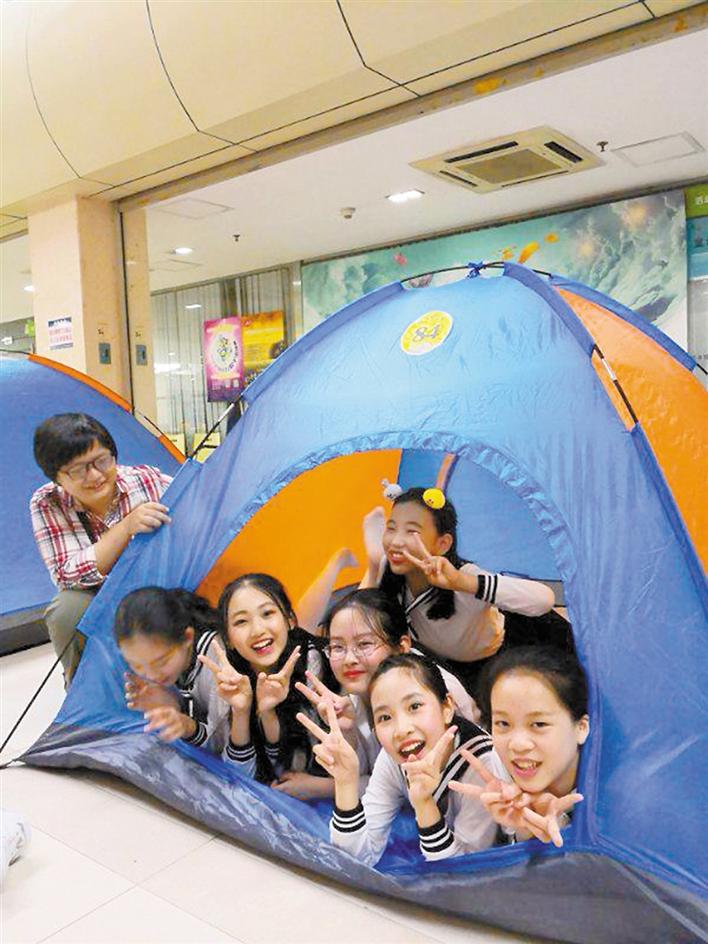 120个小读者家庭近日受邀来到深圳少年儿童图书馆,开启一年一度的“图书馆奇妙夜”。往常晚上8点的深圳少年儿童图书馆是读者离场之时,当晚却灯火通明,热闹伊始。首先迎接小读者们的是“欢迎晚会”,紧接着,小读者们进入到图书馆分组阅读之旅中,他们穿行在帐篷营地之间,享受着奇妙阅读夜的快乐。
