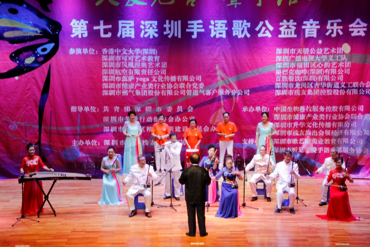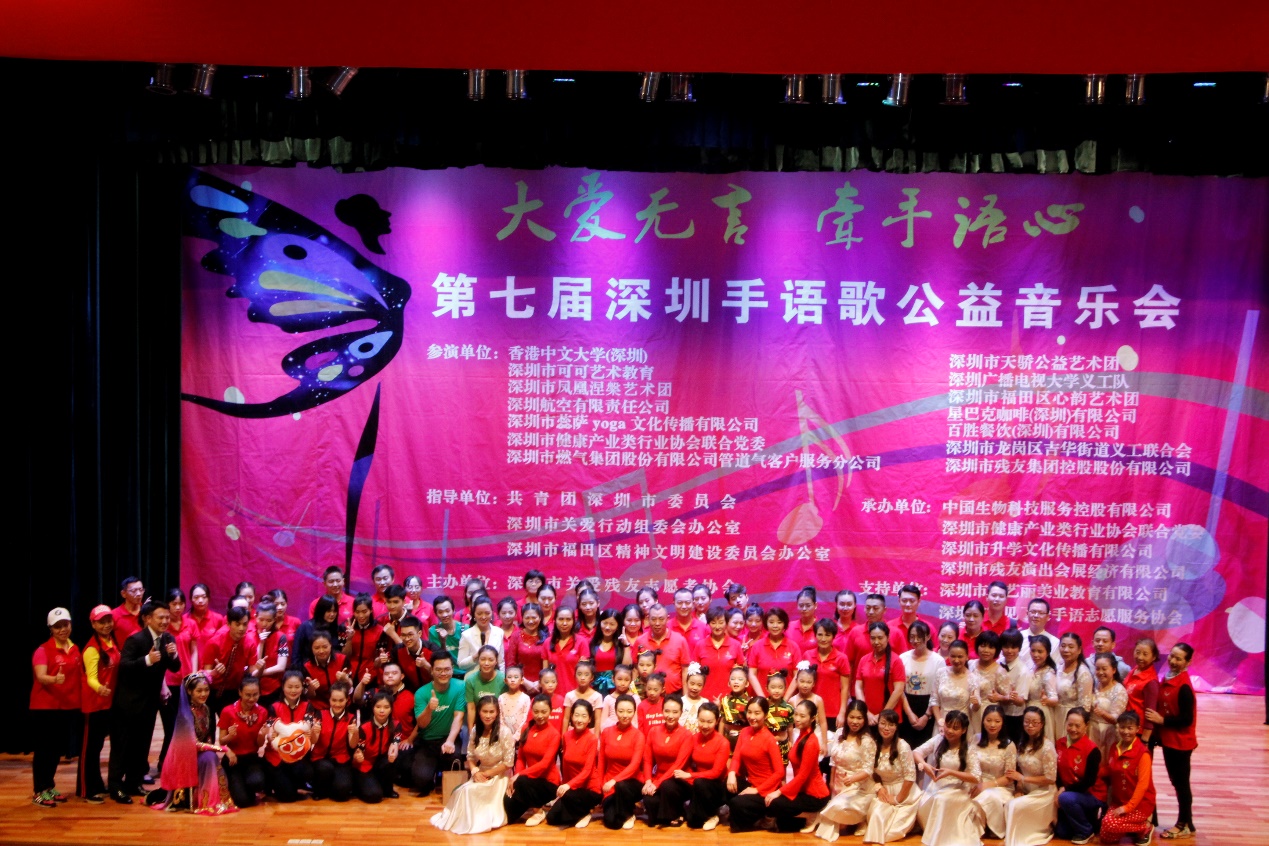 据悉,本届手语歌公益音乐会由深圳市福田区宣传文化体育事业发展专项资金资助,同时获得市委宣传部、市共青团、市关爱办、区精神文明办的大力支持,由深圳市关爱残友志愿者协会主办,中国生物科技服务控股有限公司、深圳市健康产业类行业协会联合党委、深圳市升学文化传播有限公司和深圳市残友演出会展经济有限公司等单位联合协办。自2008年首届手语歌公益音乐会举办以来,历届“深圳手语歌公益音乐会”都会邀请政府、企事业单位、社会团体等学习手语歌舞、举行大型公益汇演。(张俊达)