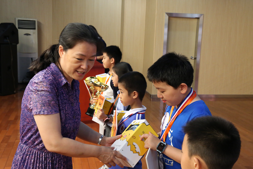 中国国际象棋协会副主席、深圳棋院院长刘适为获奖选手颁奖