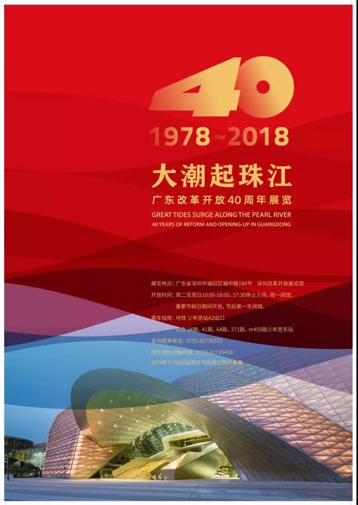 为庆祝中国改革开放40周年,深圳改革开放展览馆“大潮起珠江——广东改革开放40周年展览”将于2018年11月8日正式对外开放,欢迎广大市民观众来馆参观。