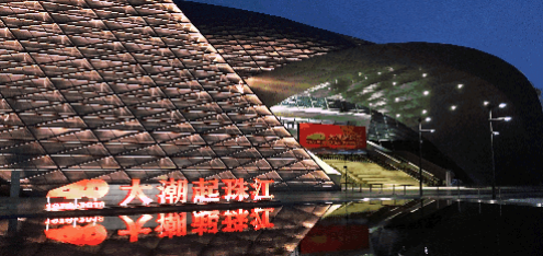 68米新媒体艺术长卷。艺术长卷分“珠水春潮”“生活巨变”“创新引领”“壮美广东”四个独立篇章,通过巨幅墙面投影,以水彩画、沙画、三维特效和动态照片的手法,生动展现广东改革开放40年的发展变化,是目前国内面积最大、分辨率最高、最具创新形式的多媒体艺术投影。