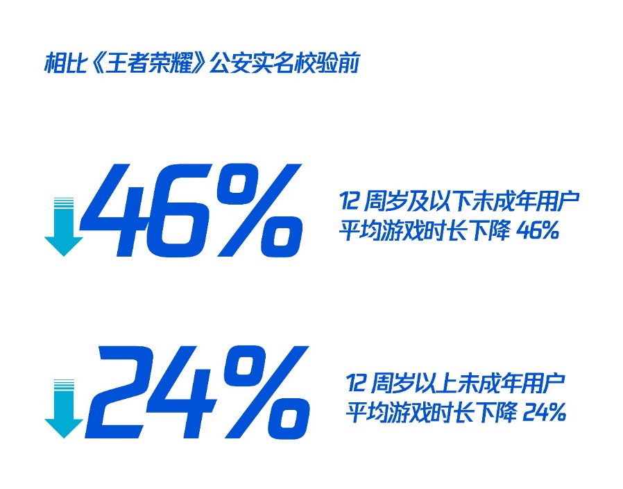 通过公安实名校验的工作,未成年用户的身份得到更精准的判断,平均游戏时长也呈现可见、显著的下降。