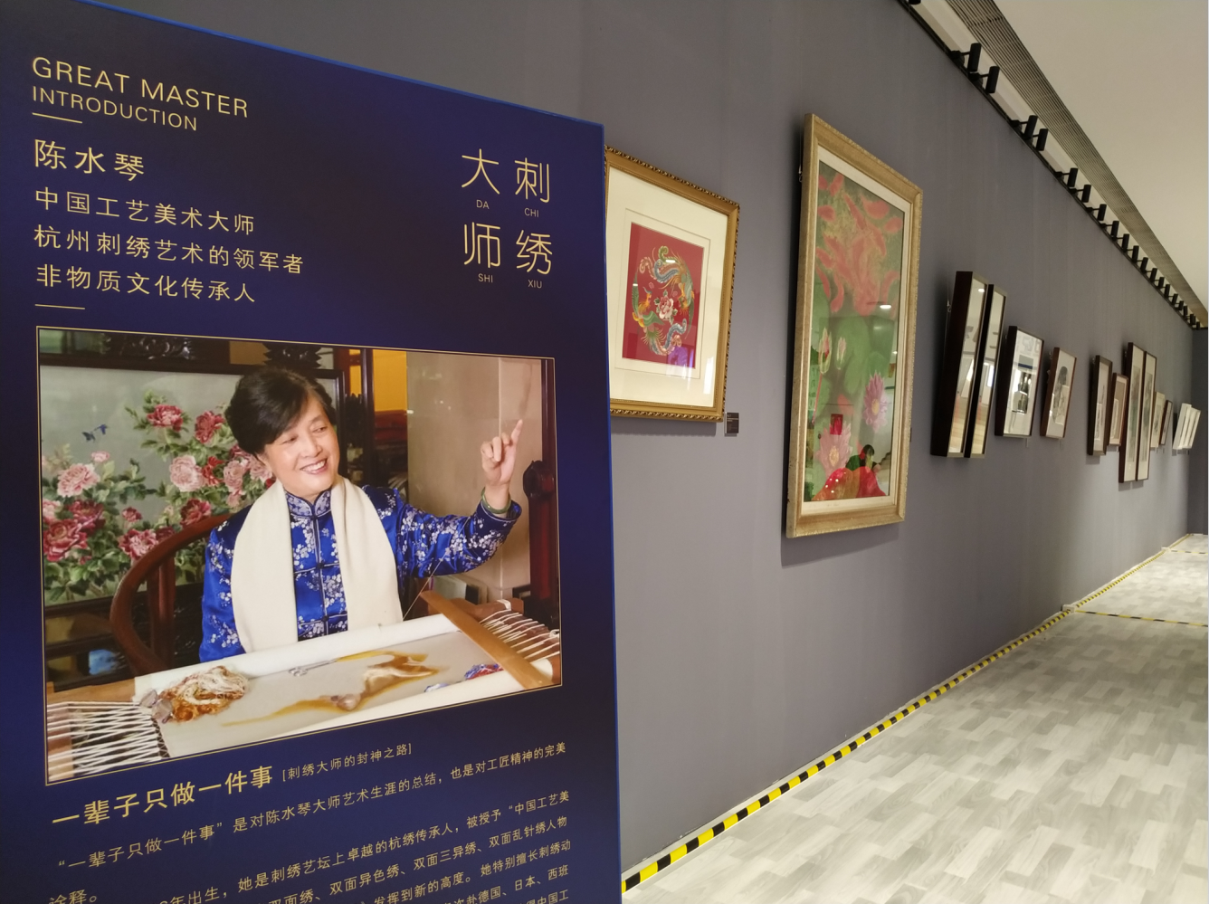 中国工艺美术大师陈水琴亲临现场,为九方艺术空间揭牌,现场指导此项技艺的传承人为现场观众进行技艺演示,同时为参加活动的嘉宾和艺术爱好者们开展签名送书活动。让更多的人了解中华民族的优秀文化遗产,向大众更好地宣传、展示杭绣这项非物质文化遗产的魅力,弘扬和传播我国的优秀传统文化。展览至19日,广大市民可前往参观,体验杭绣之美。