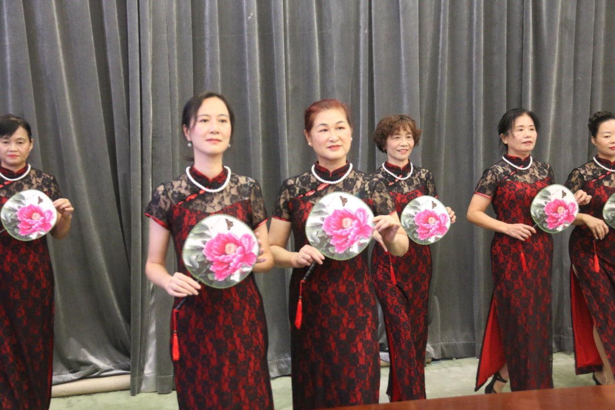 众人瞩目的文艺展演终于来了,社区居民的表演可圈可点、耐人寻味。旗袍秀诗诵《春江花月夜》,诗美、舞美、乐美、人更美,以故为新,别具一番味道;《将进酒》诗舞诵也颇有看头,从服装、道具、编排处处有新意,足见大家的用心,将诗词、舞蹈与音乐融于创作中,给在场居民带来了耳目一新的观赏体验。