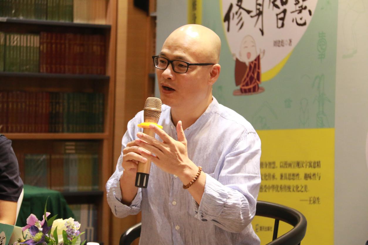 刘建彪先生从仓颉造字谈起,指出汉字来源于生活,其蕴含的为人处世的道理都是祖先留给我们的精神财富。“读经如面佛。”他说,“对待文字,我们也应该认真、专注,怀有恭敬的心。”谈及书中三十六个汉字的选取,他透露从筛选、替换到编出有助于记忆的口诀共用了一个月,在阐述修身养性的智慧之前,他已经在安静的大自然美景中深深体悟到汉字的精髓及其丰富内涵。