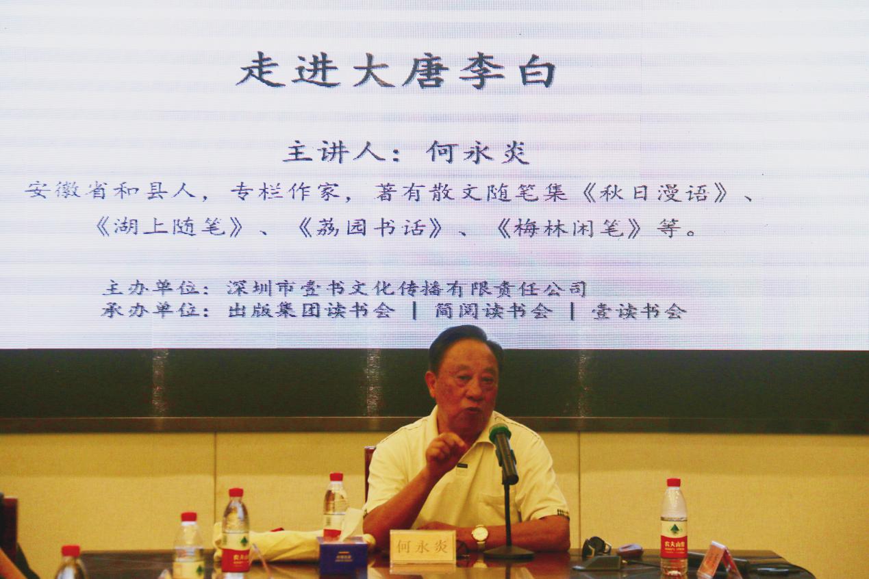 深圳新闻网讯 2019年8月31日下午,“福田区第三届文学精品有声阅读艺术节”之“唐诗三百首”专场活动“走进大唐李白”公益文化讲座暨最美唐诗朗诵会在简阅书吧香蜜湖店三楼多功能室成功举办。活动由深圳市壹书文化传播有限责任公司、深圳市书城文化投资控股有限公司主办,出版集团读书会、简阅读书会和壹读书会承办,本次活动吸引了众多对中国传统文化富有兴趣的诗歌爱好者,活动开始前已座无虚席,静候这场关于李白、关于诗歌的文化盛宴。