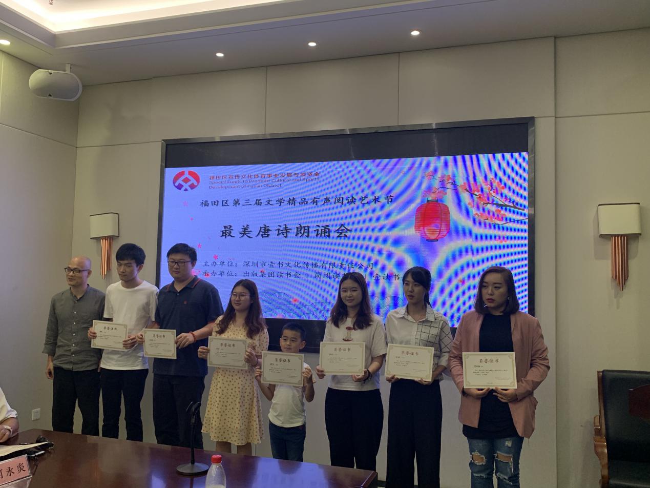 据悉,“福田区第三届文学精品有声阅读艺术节”项目由福田区宣传文化体育事业发展专项基金资助,由深圳市壹书文化传播有限责任公司承办。该项目为响应深圳市“文化强市”战略及福田区“文化惠民”工程,举办文学精品公益讲座与文艺展演,在创新公共文化服务模式、创新文学精品阅读模式、提升福田区全民阅读品质、丰富社区文化活动等方面都做出了积极探索。(通讯员:林海音 )