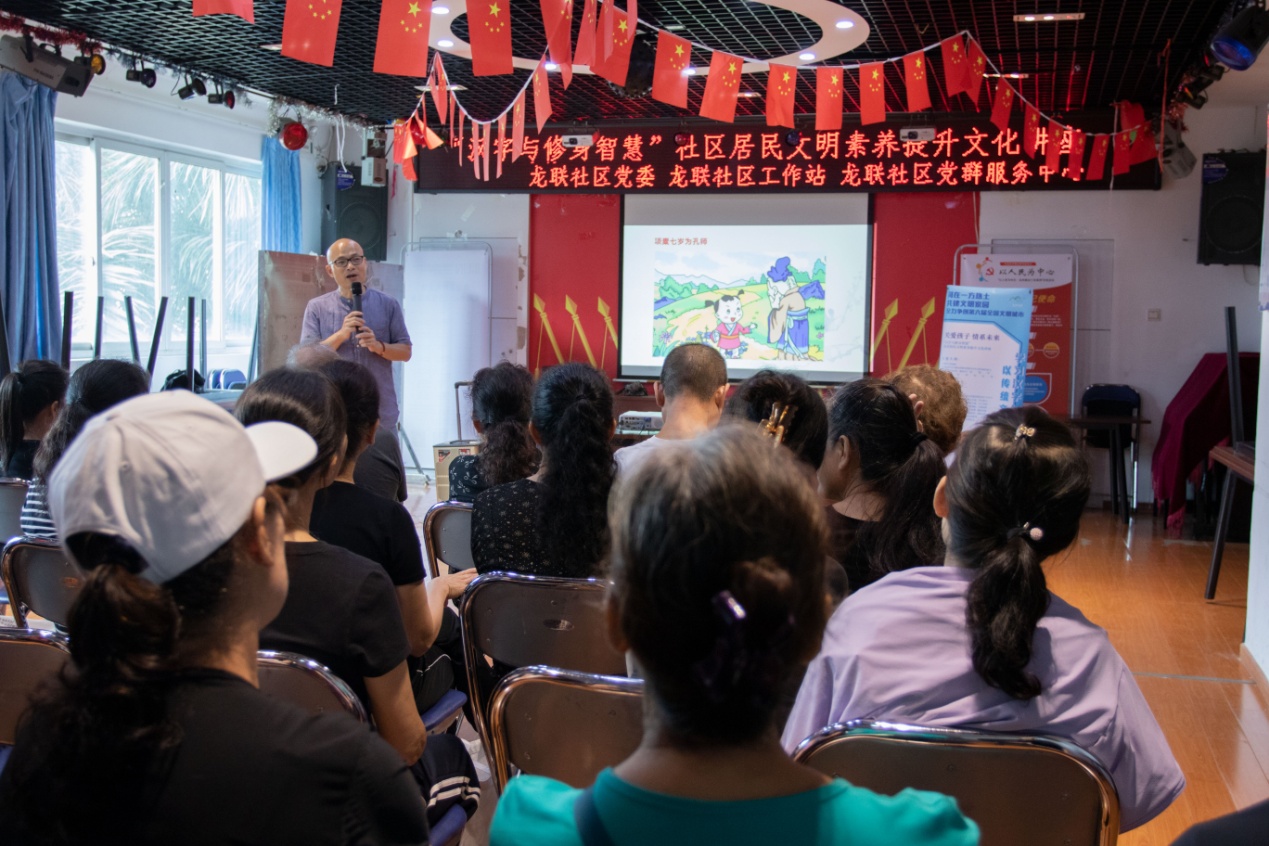 深圳新闻网讯 为更好地创建第六届全国文明城市,以创新的活动形式提升社区居民的文明素养,桃源街道党工委(办事处)携手壹书文化在辖区内12个社区开展12场“‘汉字与修身智慧’社区居民文明素养提升”专题文化讲座,邀请壹读书会创始人、知名阅读推广人、《汉字与修身智慧》的作者刘建彪担任主讲嘉宾,从中华文明的基因(汉字)出发,解读深圳市民公约,旨在启发居民在中华优秀传统文化的感召之下,践行文明礼仪,用实际行动去推进文明城市的创建。