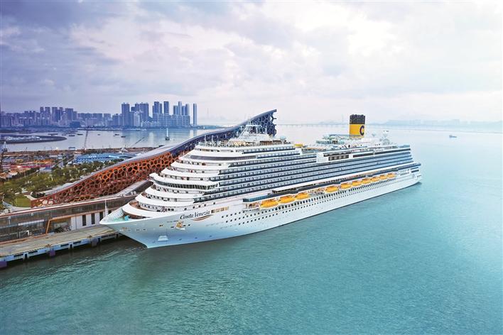 ▲歌诗达邮轮威尼斯号停靠在深圳蛇口邮轮母港。