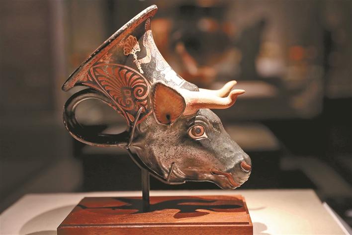 记者在展览现场看到,观众们对展品啧啧称奇,惊叹不及。一些精美的金器、首饰等尤其令女性观众流连忘返。一顶纯金的叶状金冠,深深吸引了观众何女士:“这就是传说中的桂冠吧!”这顶金冠中央还镶嵌着一块青金石。此外,还有很多地中海风格的日用器,从陶罐到玻璃器皿,都非常有特色。还有一些以希腊哲人为原型的人物雕塑,也很“吸睛”。