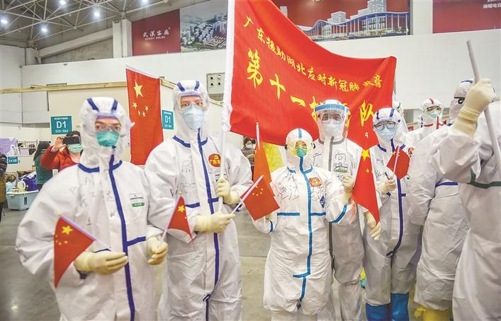 2月23日下午4点,东西湖方舱医院医护患举办“同舟共济,大爱永存”主题活动。 深圳特区报特派记者 何龙 唐光明 摄