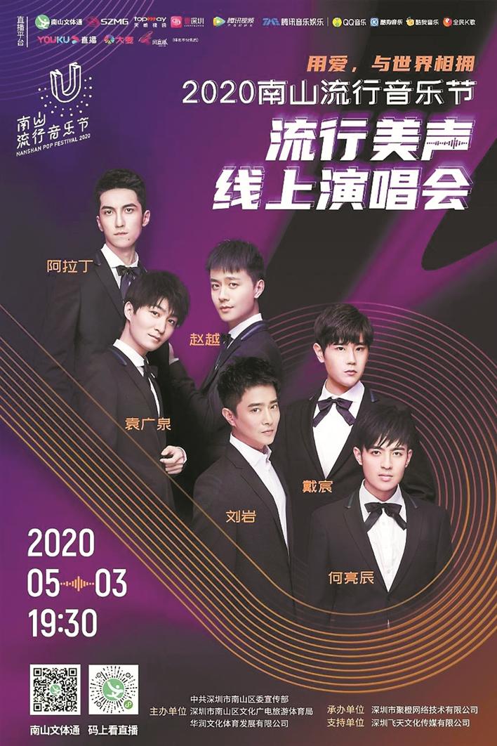 众所周知,深圳南山区集“魅力、动力、活力和创新力”于一身,洋溢着青春与梦想。在今年“五四”青年节前夕,《声入人心2》的6大青春追梦人加盟南山流行音乐节,用歌声暖人,为梦想发声。他们是“上音三大男高音之一”戴宸、“意大利帕尔玛皇家歌剧院唯一中国男中音”何亮辰、“第一代音乐剧王子”刘岩、“莫斯科柴可夫斯基音乐学院满分博士”袁广泉、“中国青年男高音歌唱家”赵越、“中戏新生代音乐戏剧新星”阿拉丁。他们将共同参与今年的流行美声线上演唱会,以“致英雄,用爱,与世界相拥”为主题,用青春的力量为抗击疫情、复工复产发声。