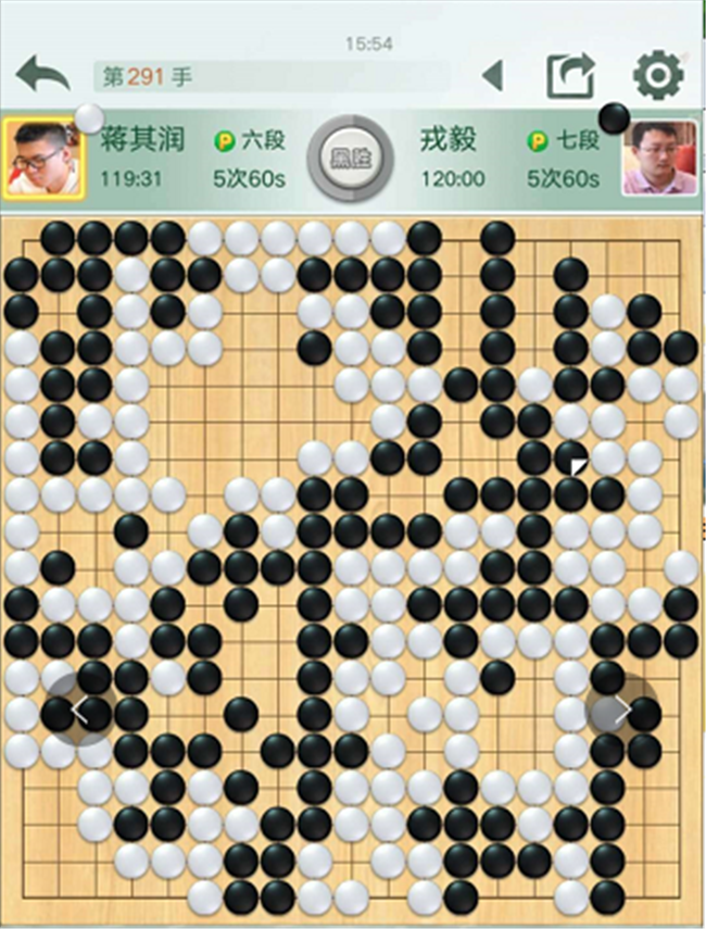 四台,戎毅执黑对阵蒋其润。中盘白142补棋时候选点失误留下后患。黑163好棋抓住白棋破绽一举领先。