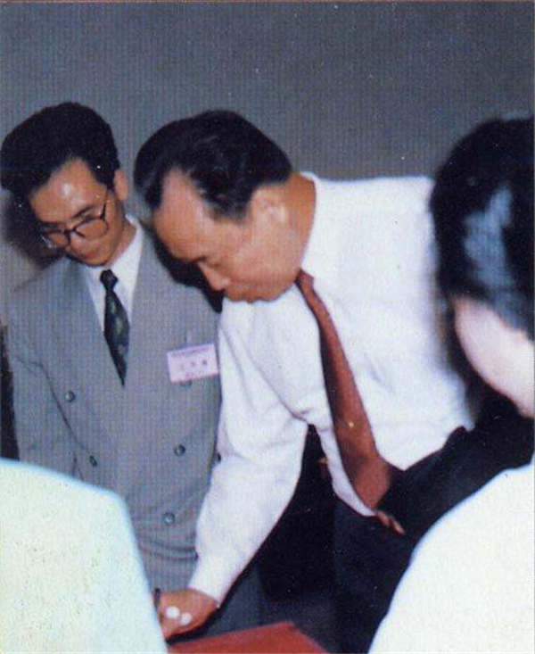 郑良玉任深圳市长时与作者常福居士亲切交谈后留影