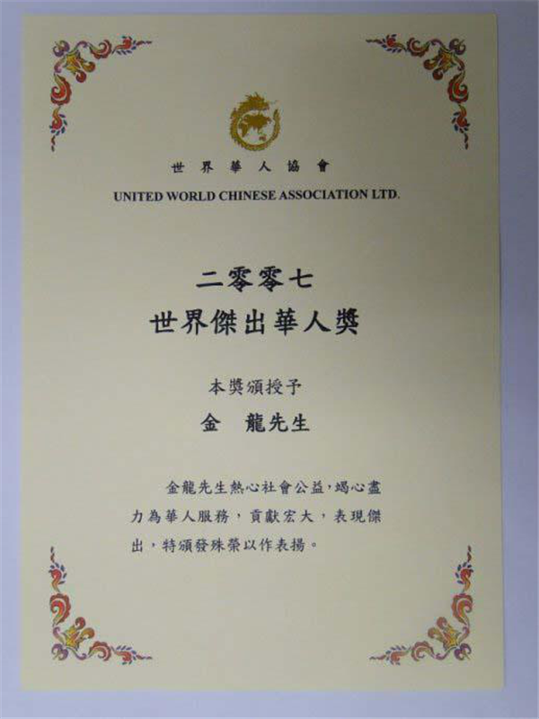 21)2007年,深圳首位书法家获“世界杰出华人奖”