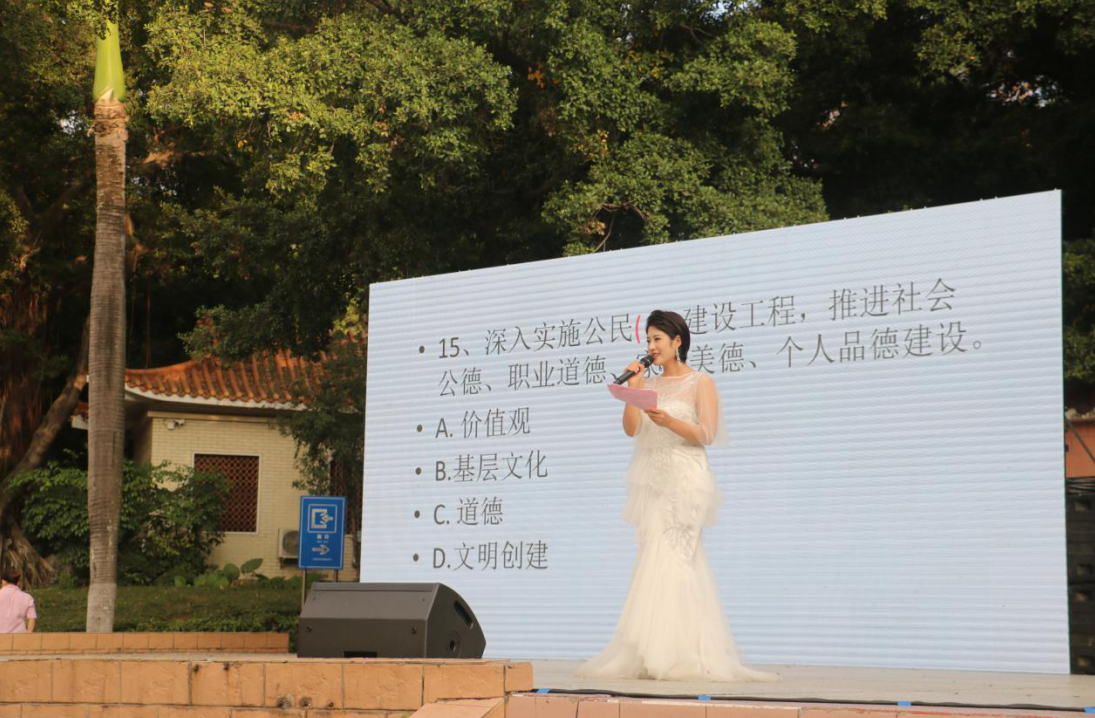演出在欢快的《永唱中国梦》歌舞中拉开了帷幕;怀旧老歌《红歌联唱》经典又回味,越听越喜欢;特色节目《李玉刚模仿秀》反串女声,一开口惊艳全场……整场演出高潮迭起,精彩不断,观众们无不拍手鼓掌,欢呼叫好。节目主持人在每个节目之间还以有奖问答的形式,宣传党的十九届五中全会的内容,观众们踊跃参与,大家都说,这样喜闻乐见的活动亲切,接地气,不妨多来几场。目前,西乡街道党工委正在打造“学习强国”示范街区,“今天,你学习了吗”已成为时尚的见面问候语。(孙善文)