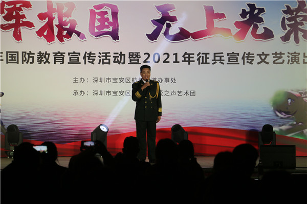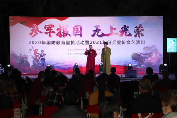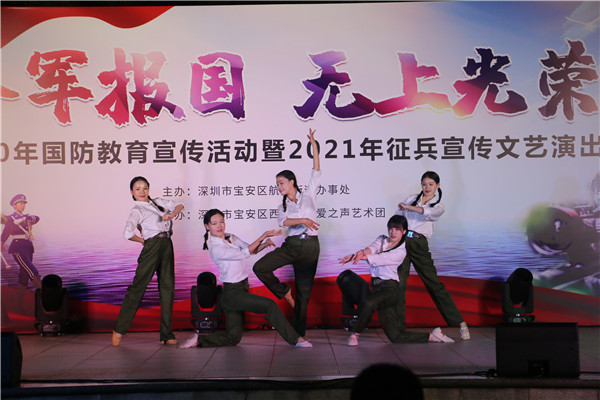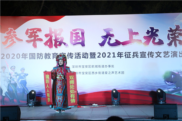 见圳客户端•深圳新闻网2020年12月2日讯 为增强辖区居民的国防意识,做好今年冬季征兵工作,12月1日,深圳市宝安区航城街道办“参军报国 无上光荣”为主题的国防教育宣传活动暨2021年征兵宣传文艺演出在航城街道办成功举办。此次活动由深圳市宝安区航城街道办主办,宝安区西乡街道办爱之声艺术团承办。