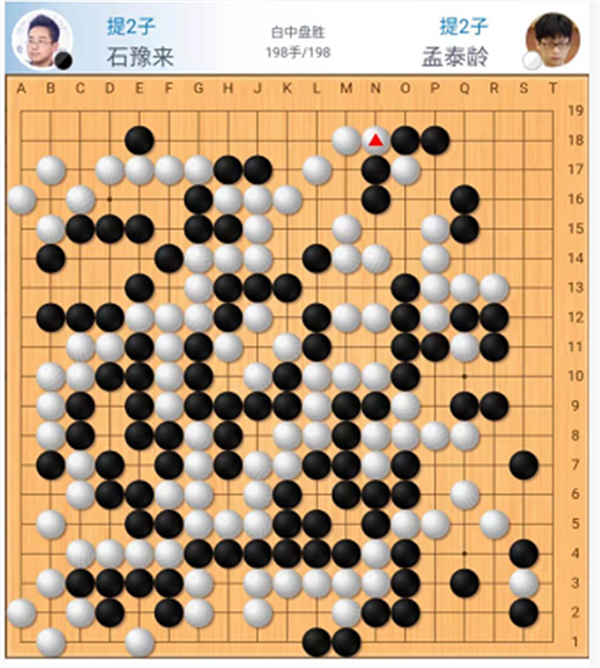 慢棋第三台由小将石豫来三段执黑对阵孟泰龄七段。开局黑左上连续失误,导致局面早早进入不利的战斗。之后黑棋四处求战终显勉强,最终以死去中央大龙的代价吃掉白棋右边一块大棋,依然以较大差距落败,石豫来执黑中盘负孟泰龄。