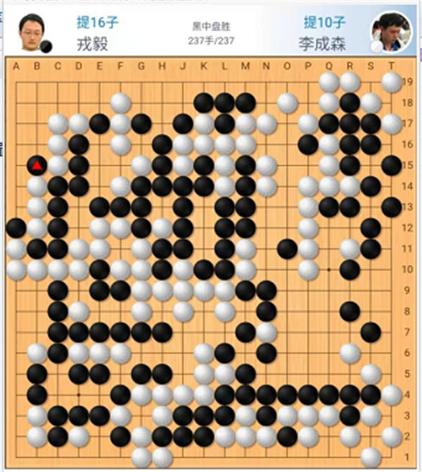快棋台由深圳队的戎毅七段执黑对阵天津队的李成森五段。序盘平稳过渡,进入中盘时黑棋在白上方大空中试应手,白棋最大程度强撑大空,留下隐患。在下方定型结束后,黑棋在白空中弈出巧手将白空打穿,取得领先。在劣势情况下,白棋在争抢官子时置中央大龙于不顾,黑棋攻杀白大龙顺势将白棋左下角吃掉,一举获胜。戎毅执黑中盘胜李成森。