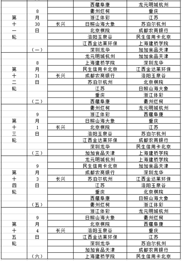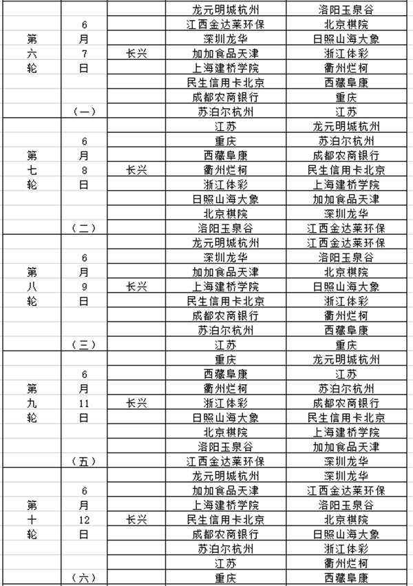 另,季后赛日程待定,计划三轮+总决赛,地点仍在长兴。