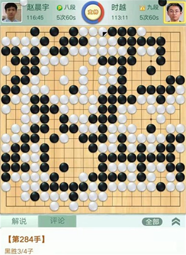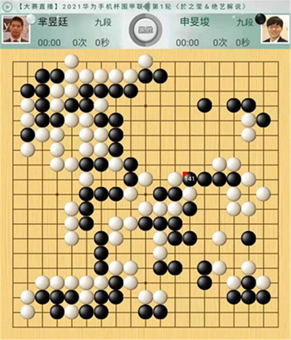 今日比赛中,申旻俊主将执黑对阵新二冠芈昱廷,开局左上角申旻俊配合小米使出芈氏飞刀,结果是飞刀不成功黑棋局面领先。中盘黑棋攻击中央白棋时,白棋脱先抢占实地。被黑手起刀落斩杀大龙,局终。快棋台,去年屡立战功的戎毅七段执白对阵黄云嵩七段,行棋稳健,占居三个角之后,又在中间活出一大块,行棋至194手胜。三台陶欣然八段对阵陈贤八段,行棋222手白中盘胜。四台时越九段对赵晨宇一战,行至284手,以四分之三子微弱优势取胜。