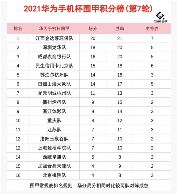 2021华为手机杯中国围棋甲级联赛常规赛第七轮北京棋院队1:3深圳龙华队