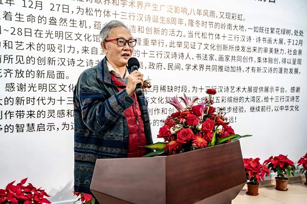 读特客户端·深圳新闻网2021年12月29日讯(记者 田志强)近日,国家社科基金项目“当代汉诗创新诗体研究”阶段性成果展——十三行汉诗书画作品展,于光明区文化馆成功举办。本次展览集中展示本项目重要研究成果、全国各地新汉诗诗人的原创十三行汉诗之书画作品等。十三行汉诗创立八年以来,得到了海内外诗人的广泛关注,在国家社科基金研究团队精研阐释的基础上,得到了学术界的肯定。