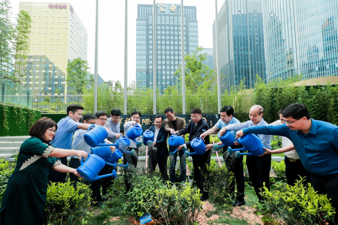 全国人大常委会原委员、福建省人大常委会原副主任、海峡两岸茶业交流协会高级顾问庄先(左二),中国工程院院士、湖南农业大学学术委员会主任刘仲华(右二),著名财经作家、华祥苑国货推荐官吴晓波(左一),华祥苑茶业股份有限公司董事长肖文华(右一)共同为主题公园开园揭幕。为庆贺国际茶日而建的主题公园——521国际茶日主题公园,盛大开园!世界茶树在这里汇聚,华祥苑八大庄园的茶树于此展现,学习堂里有对中国茶发展的殷殷嘱托。中国茶文化的世界坐标,中国传统文化的世界表达,再添新章。