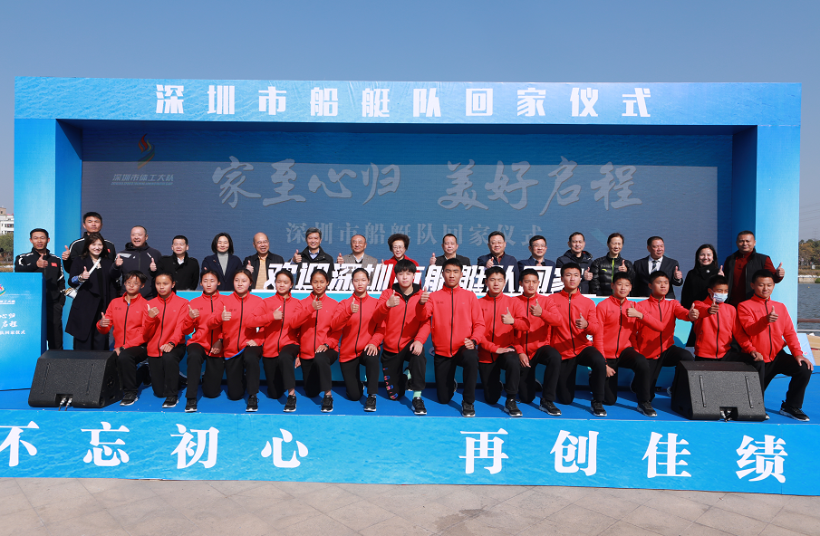 1月18日,"家至心归、美好启程"深圳市船艇队回家仪式在宝安区燕罗湿地公园的深圳市体工大队水上运动训练基地举行。
