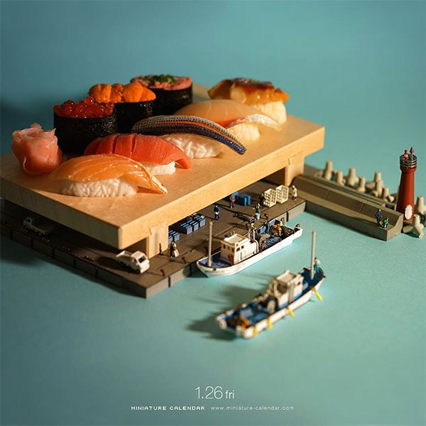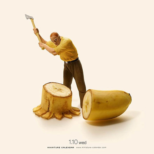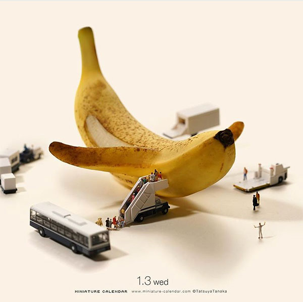 这些内容的作者是Tatsuya Tanaka(田中达也),一位微缩艺术创想者,从2011年至今,专注在这个领域长达7年之久。在他的作品中,缩小比例的人物和日常用品是构成这个微缩世界的重要组成部分,而他的想象力则是让这一切变成“真实”的连线,而美食正是他作品创意的来源之一。