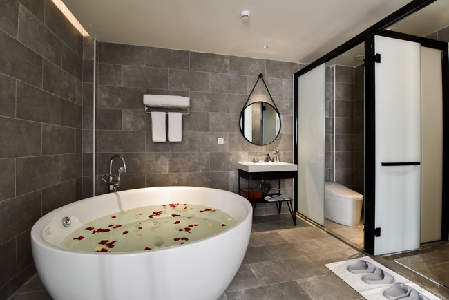 二是客房内优化空间,打造极简生活艺术。设计师强调,设计的这件作品,客房是没有艺术的,但绝不缺乏艺术感,他称之为极简生活艺术。比如以往入住酒店时,衣橱很隐蔽,存取衣物都得打开柜门;拖鞋在箱柜内不便寻找;开关太多临睡前需要尝试很多次才能关闭所有灯光,等等。所以他特别针对这些弊端进行改革,设计并定制了许多产品,一是摒弃衣柜,设置便捷行李架,可放置至少2个行李箱,同时特别设计挂墙衣架,在方便存取衣物的同时,更有效节省空间;二是简化开关,平均每间房5个左右;三是大面积使用黑白灰色调,身处其中,让客人感觉自己才是真正的主角,其他只是背景。