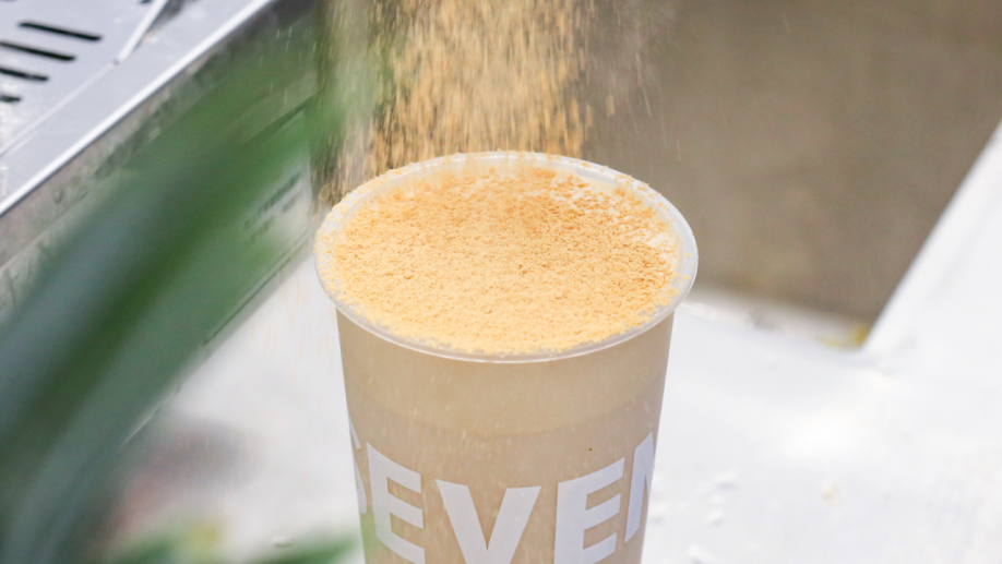 首创豆乳奶茶。最特别的就是奶盖顶部那层厚厚的黄豆粉,独特的口感让其成为当之无愧的独家招牌。