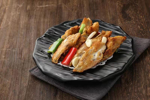 顺德勒流名菜之一,明代李时珍认为:“鳙之美在于头”。取鳙鱼,即大头鱼的鱼头精华部位——鱼嘴入馔,用顺德人擅长的煎焗技法使鱼头色泽金黄、鲜香嫩滑。
