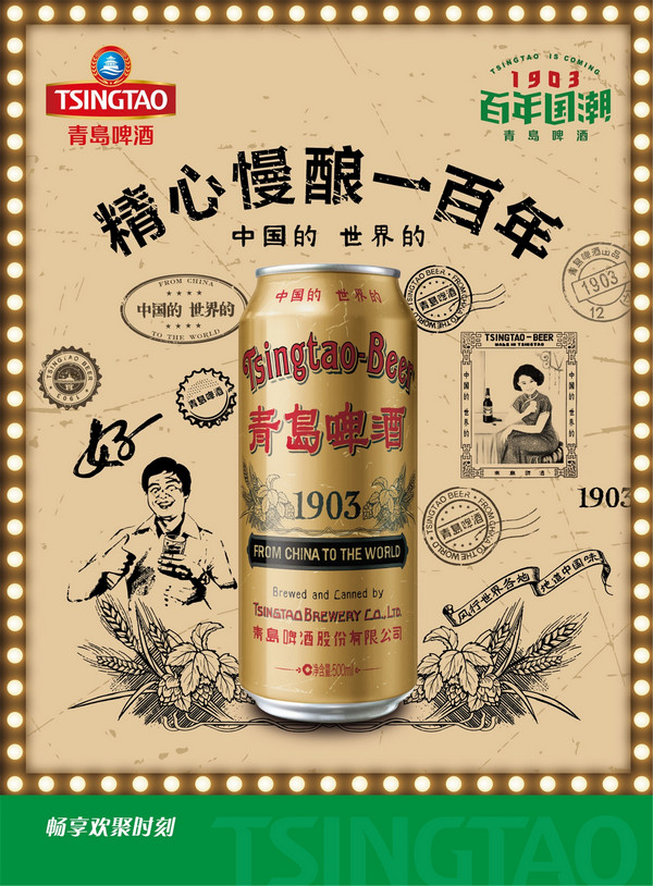 经典1903国潮罐是青岛啤酒为再造精酿传奇,传承青啤文化和品牌魅力的产品。采用源自1903年的“两段法低温酿造工艺”,精心慢酿,造就了醇香四溢的口感和体验。罐体上复刻了百年前经典瓶贴画面,是啤酒中的国潮和时尚的典范。