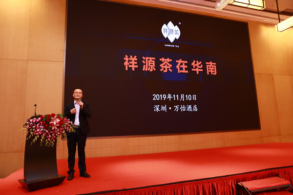 祥源茶业营销中心助理总经理华南、河南大区市场总监赵东方先生介绍祥源茶未来在粤港澳大湾区及华南、西南市场面对的机遇和未来营销布局