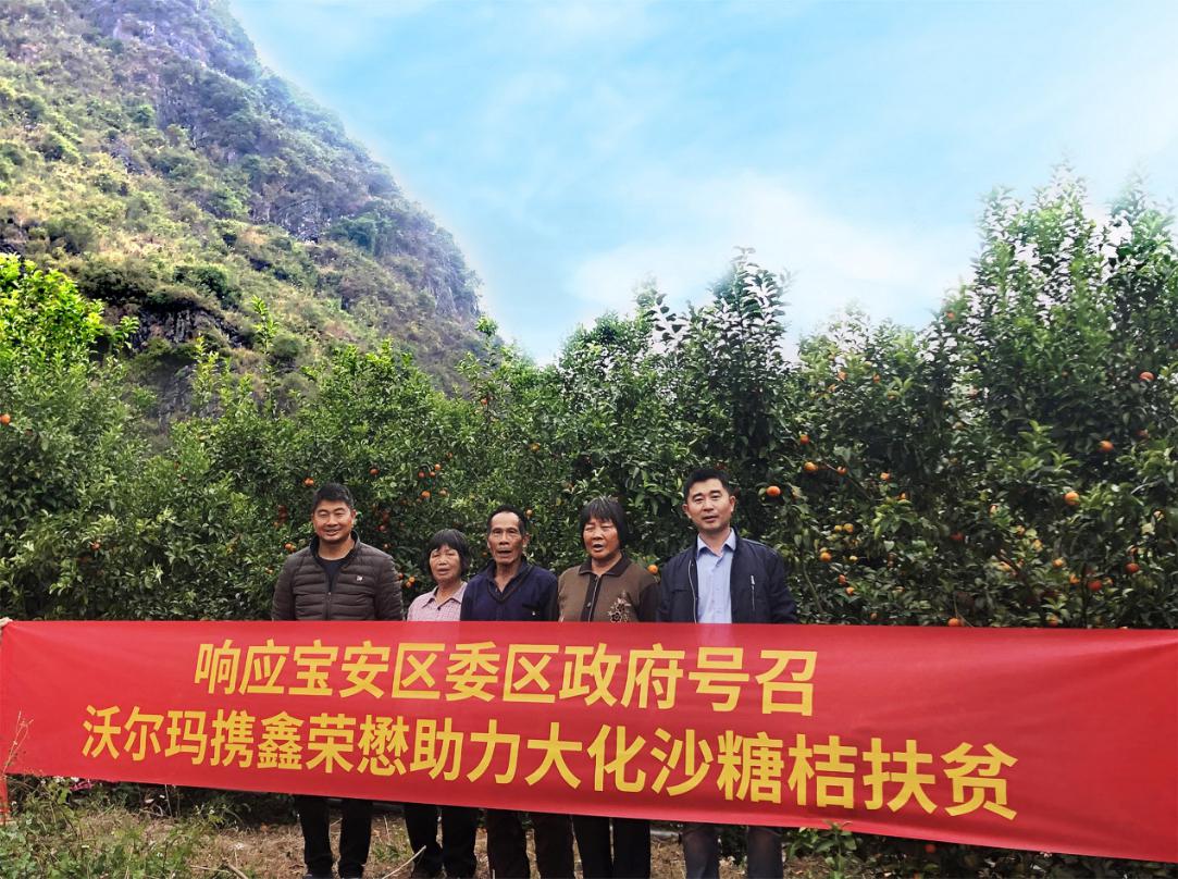 2019年,鑫荣懋进一步深化对口帮扶工作,通过免费授肥、请专家到果园授课,提升大化柑桔的产量和品质,带动当地水果产业发展。为大化县所有建档立卡的水果种植贫困户、及贫困户参与经营的果园免费发放肥料逾12吨,受益种植面积近1300亩,同时优先采购贫困户管理经营的果园。