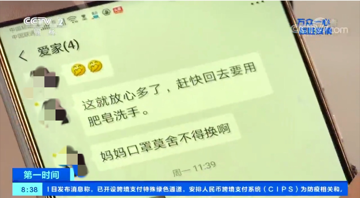 除了紧张忙碌的工作,钟天平更担忧1000公里之外的家人。他的岳父母生活在湖北黄冈市下辖的浠水县。在钟天平的微信里有一个叫爱家的群,里面就是岳父岳母和他两口子,互相嘱咐戴好口罩、注意安全,成了这个春节最重要的祝福语。